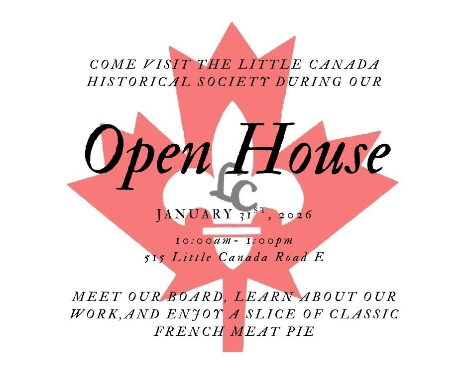 The Little Canada Historical Society will have an open house on January 31, Saturday from 10-1. They serve meat pie starting around 11:30. Please come if you have the time. See below for more details. They are located in the Little Canada City hall across the road from the cemetery. Hope to see you there.